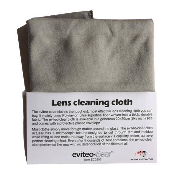 Die Eviteo-Clear Tuch ist die beste und effektivste Tuch zur Reinigung einer Linse. Das Tuch wird hauptsächlich aus Poly / Nylon ultra-Mikrofaser, gewebt in eine dicke haltbare Gewebe. Das Tuch ist 18 x 18 cm und ist in einem Schutzplastikgehäuse.