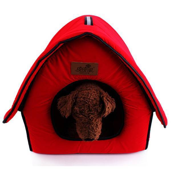 Die Form erinnert an die klassischen Holz Doghouse außen. Aber das Hundehaus ist aus weichem gesteppten Stoff gemacht und so warm. Das Hundehaus verfügt über einen Eingang auf der einen Seite und eine dekorative bot auf dem Dach. Wählen Sie aus zwei Farben.