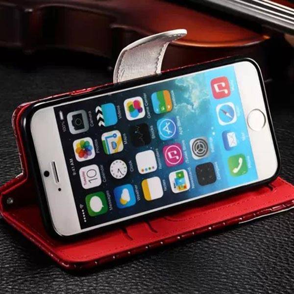 Das elegante Gehäuse aus PU-Leder für iPhone 6 ist ein schickes Accessoire für Ihr Handy. Die Abdeckung ist so konzipiert, dass alle Bedienelemente und Anschlüsse des Telefons richtig verwendet werden. Darüber hinaus enthält die Hülse einen Schlitz für Geld oder Karten können hinein. Die Abdeckung ist eine schöne Dekoration für Ihr Telefon, sondern schützt auch vor Schäden täglich.