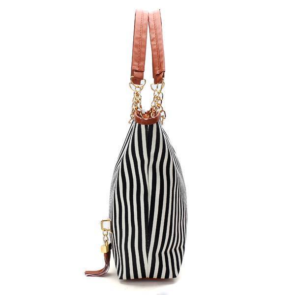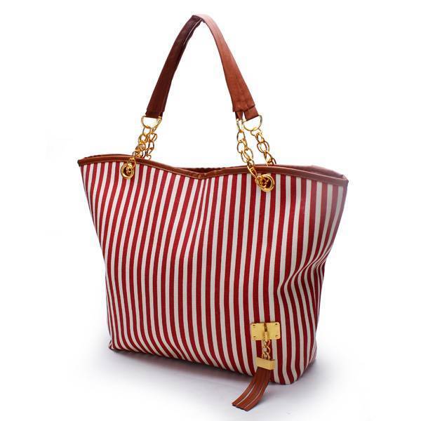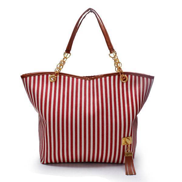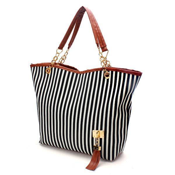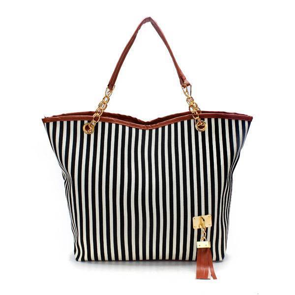 Gemütliche bis zum Markt oder in den Supermarkt mit so einem netten gestreiften Einkaufstasche. Es ist aus robustem Canvas, schließt mit einem Reißverschluss und die Ausstattung hat eine flotte Quaste berühren. Das aufwendige einkaufen auch gut am Strand und im Park. Wählen Sie aus zwei Farben.