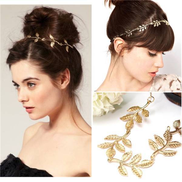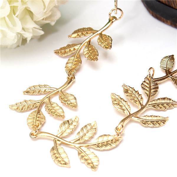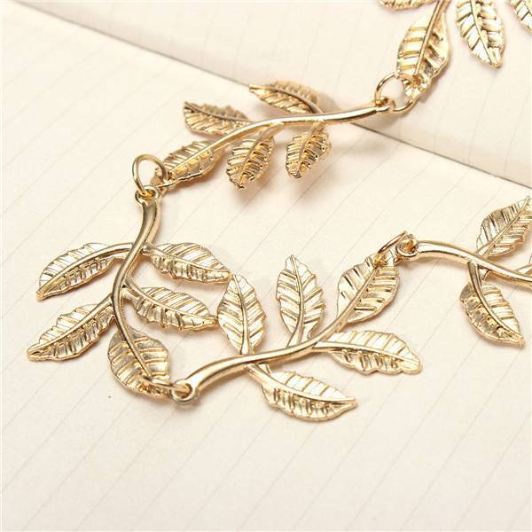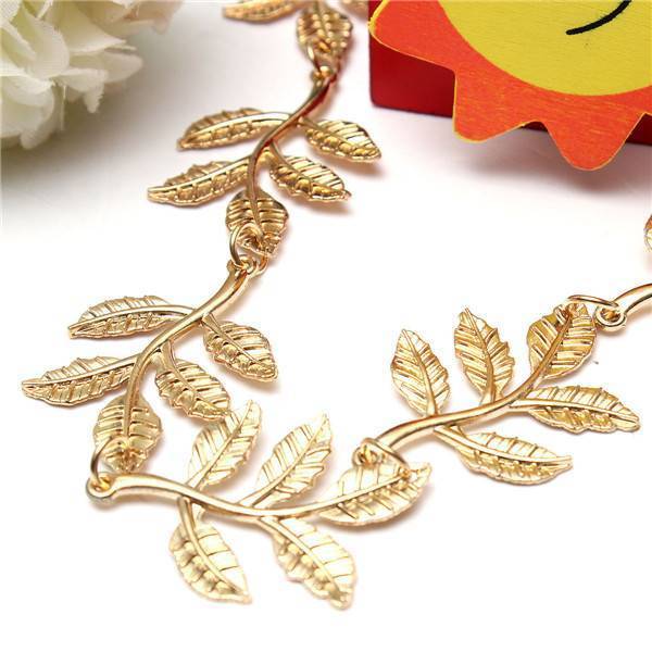 Diese schöne Haarband hat eine goldene Farbe und die Haare einige Anhänger in der Form der Blätter hängen. Das Kopfband ist aus Aluminium hergestellt und weist ein elastisches Band. Diese goldene Stirnband ist ein schickes Accessoire für Ihr Haar, die Sie schön aussehen!