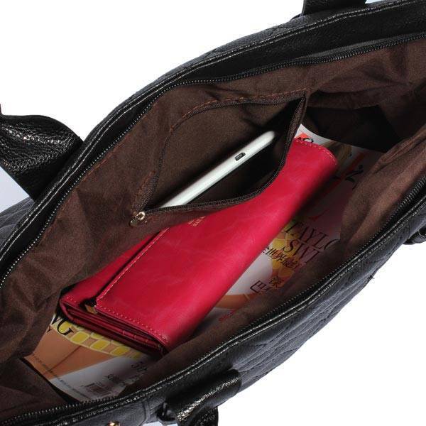 Diese Handtasche Damen aus schwarzem Leder ist von guter Qualität und hat ein schönes Design, Doppel-Reißverschluss-Design und sehr modisch. Es ist schwarz und alles mit der Farbe abgestimmt, PU gepolstert für Damen und es macht Sie modisch.