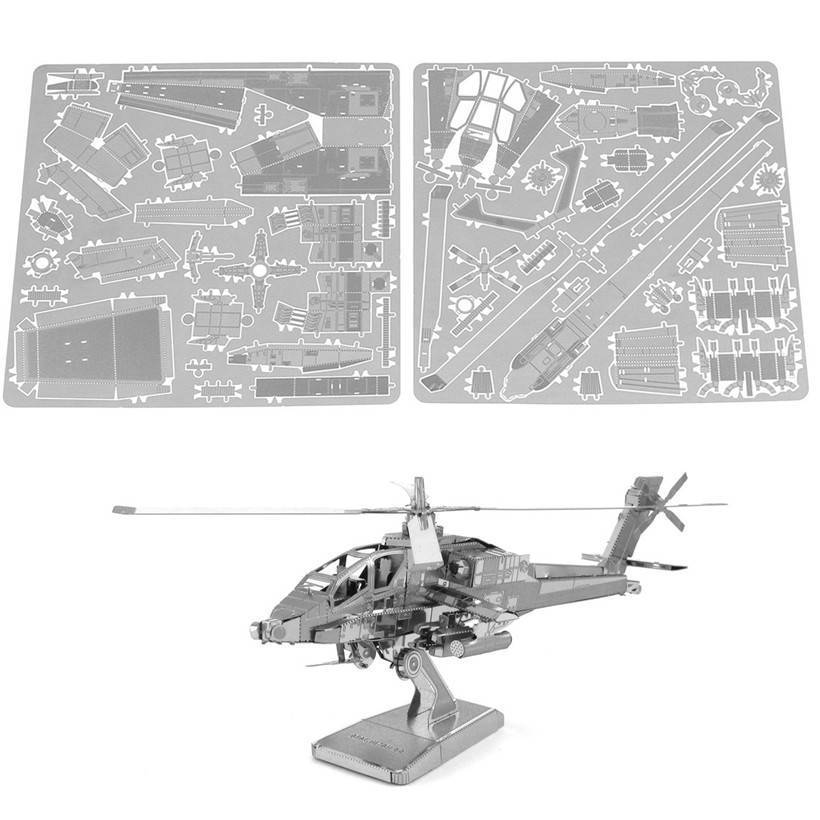 Modellhubschrauber 3D Puzzle aus Edelstahl, ein Spaß für die Modellierer und Puzzler. Sie verwenden einen harten Apache-Hubschrauber ohne Kleber mit diesem 3D-Puzzle-Modellhubschrauber. Geeignet für 14 Jahre und älter.