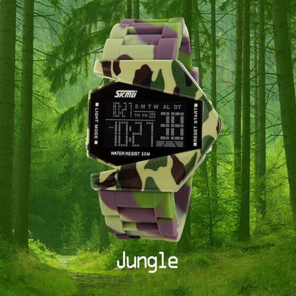 Diese LED-Tarnung Uhr ist speziell für den rauen Gelände, Hindernisse und Wasser gestaltet. Dies ist die Art der Uhr, die Sie in einem Überleben, ein Tag Mountainbike oder Trekking mit Kanus haben. Die Uhr verfügt über ein robustes Design und Camouflage-Print. Darüber hinaus entschied sich hier für eine moderne LED-Bildschirm, auf dem Sie die Zeit und andere Informationen finden. Da diese LED Tarnung Uhr wasserdicht ist, können Sie auch tauchen.