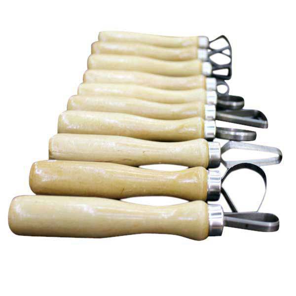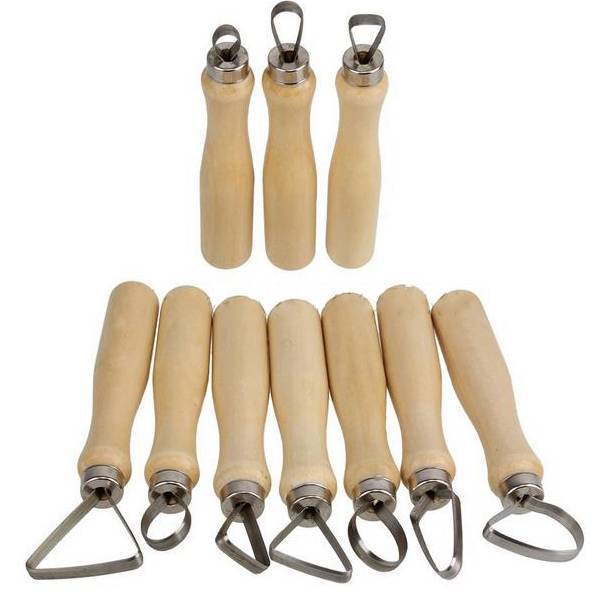Dieser Ton-Tools Set enthält 10 verschiedene sculptuurvormjes. Das Werkzeug besteht aus Metall und hat einen Holzstiel. Das Werkzeug ist für die Verarbeitung von Tonmaterialien ideal und dergleichen, und ist bequem zu verwenden.