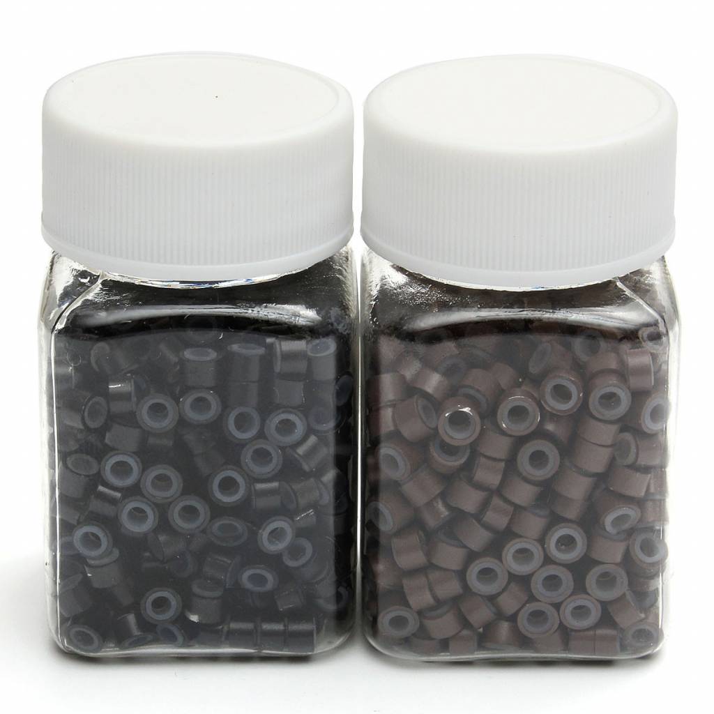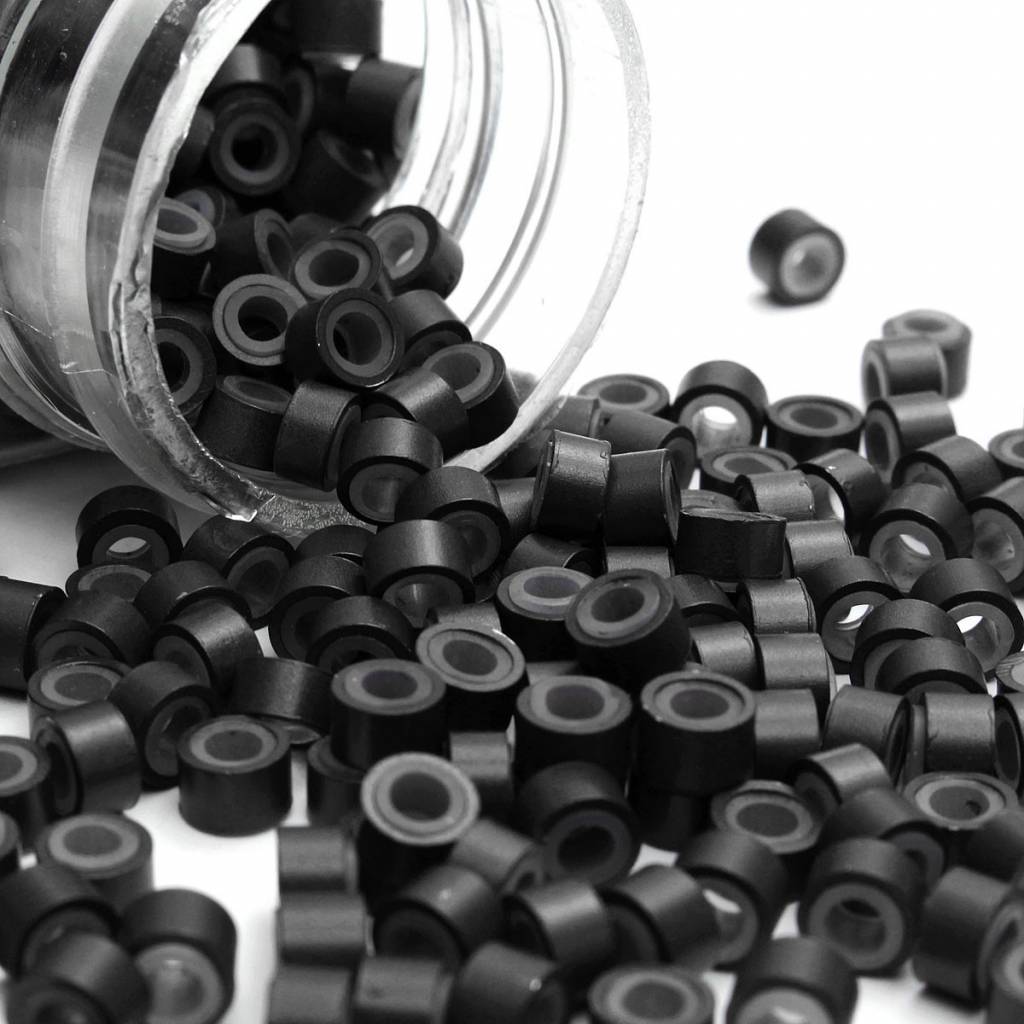 diese Mikroringe Mit setzen Sie Ihre Haarverlängerungen fest. Die Mikro-Ringe haben einen Durchmesser von etwa einem halben Zentimeter und sind unauffällig. Sie sind erhältlich in schwarz und braun, und bestehen aus Silikon. Die Mikroringe werden von fünfhundert Stück geliefert.