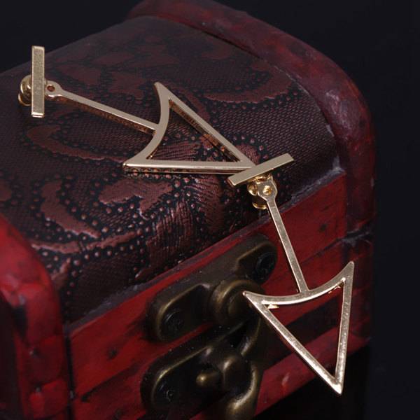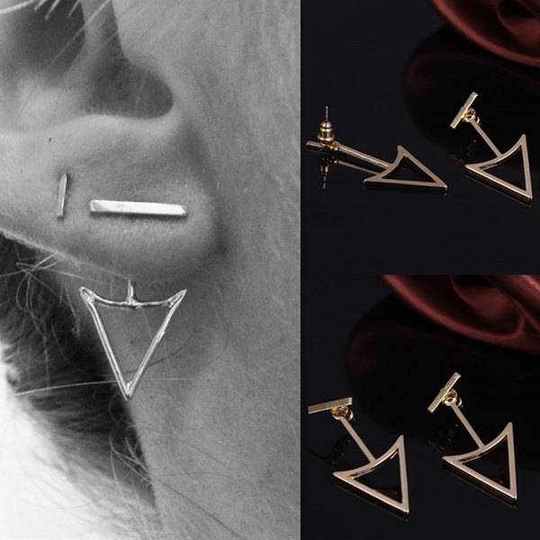 Diese Ohrringe haben ein sauberes, minimalistisches Design und sind eine gute Möglichkeit, Ihre modernen Outfits perfekt zu erleben. Die Ohrringe in Form von Dreiecken, die von hinter dem Ohr kamen, eine originelle Wendung zu schaffen. Die Ohrringe sind aus Metall gefertigt und sind in Gold und Silber erhältlich.