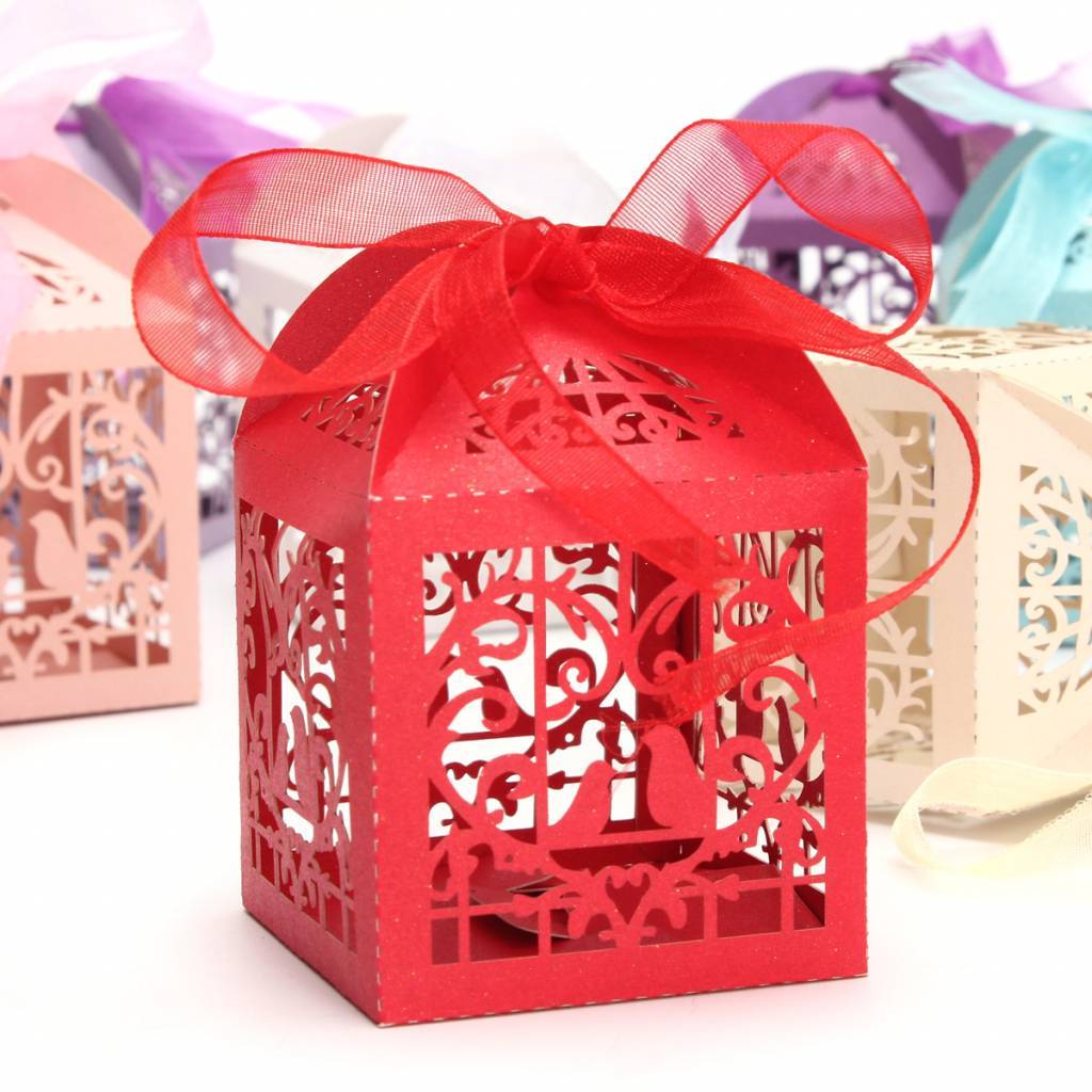 Diese elegante Candy Box ist wie ein Vogelkäfig geformt und eine nette Art Süßigkeiten oder andere kleine Geschenke zu wickeln. Die Pralinenschachtel ist ideal bei Geburtstagsfeiern, Hochzeiten und anderen besonderen Anlässen zu auszuteilen. Sie können das Feld in mehrere Spaßfarben kaufen. Die Box besteht aus Pappe und kommt in zehn Stücke.