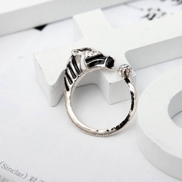 Dieser lustige Ring ist das perfekte Accessoire für jeden Tag! Der Ring ist in Form eines Zebra mit Ösen von künstlichen Steinen. Der Zebraring verleiht jedem Outfit einen besonderen Twist und ist auch eine unterhaltsame Art und Weise zu zeigen, dass Sie ein Tierliebhaber sind. Der Ring besteht aus Metall. Sie können es in Silber oder Gold kaufen.