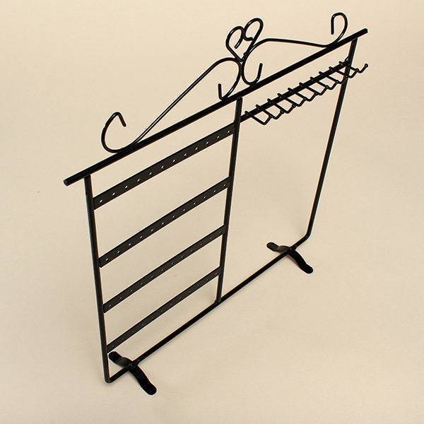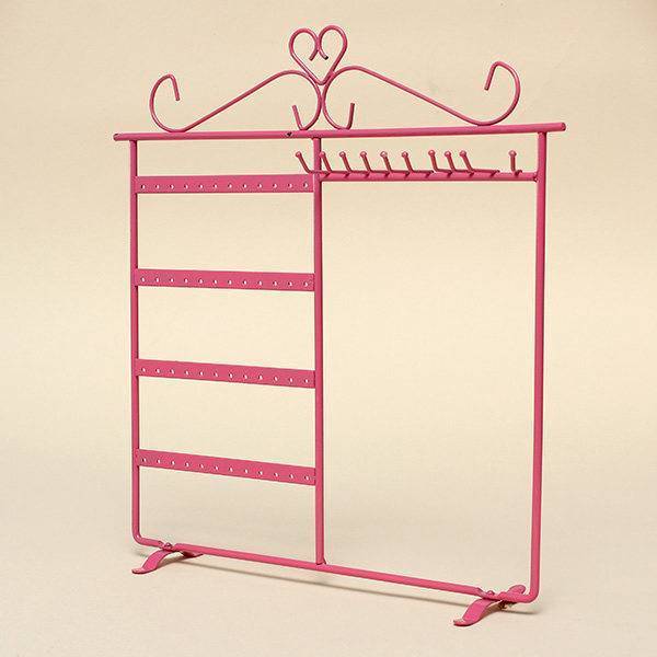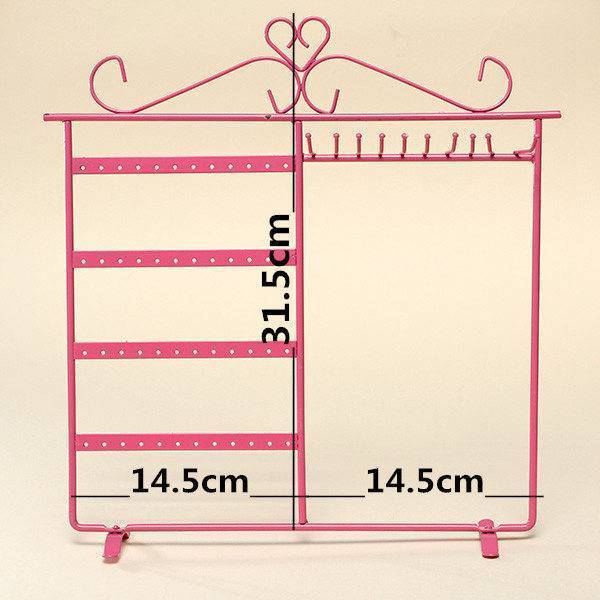 Fein organisiert und es macht auch Spaß. Ordnen Sie Ihre Ohrringe und Halsketten, und diese verzierten Metall-Schmuck-Rack. Das Rack verfügt über 48 Löcher für Ohrringe und 10 Haken für Ketten und anderen Schmuck hängen. Geeignet für zu Hause und in Geschäften. Wählen Sie aus drei Farben.