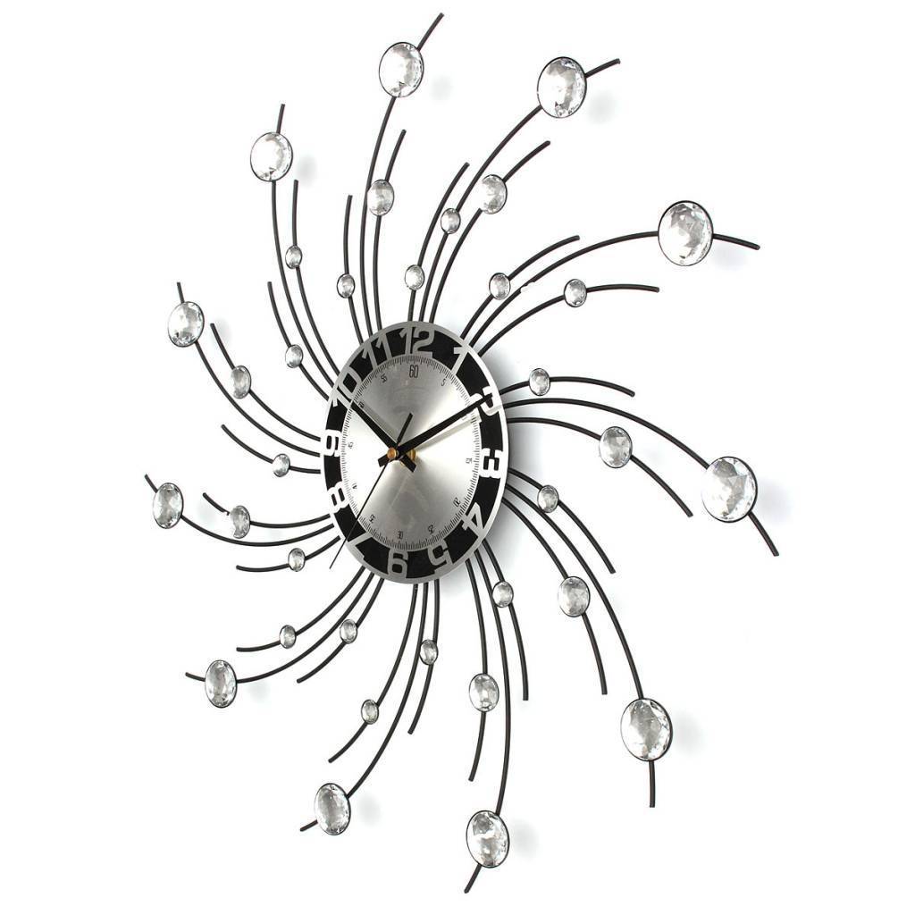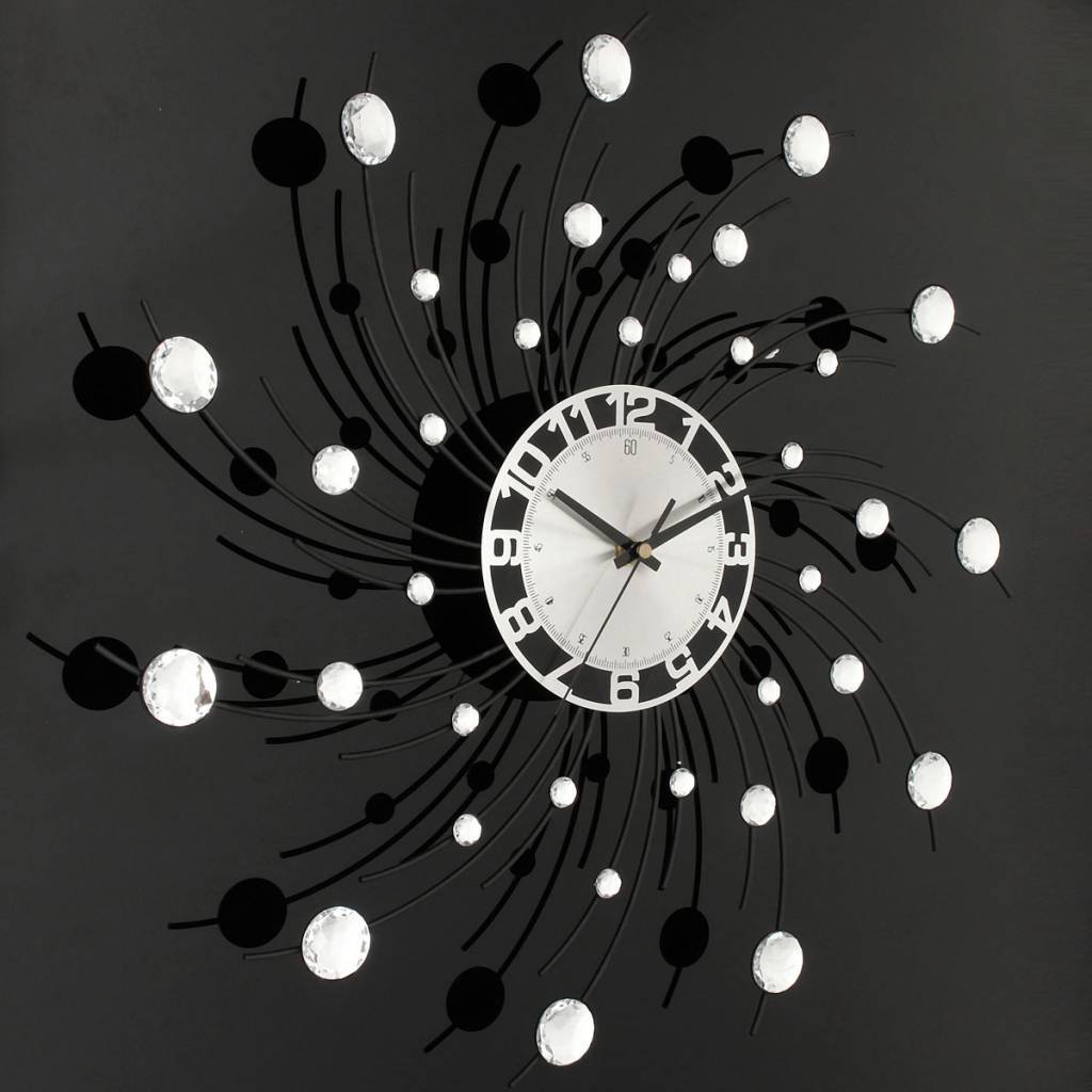 Dieses Silber 3D Wanduhr aus Metall, Glas und Stein Rhein, ist ein schönes und elegantes Element für das Wohnzimmer, die Küche oder Bar. Die Uhr arbeitet mit Batterien (nicht im Lieferumfang enthalten).