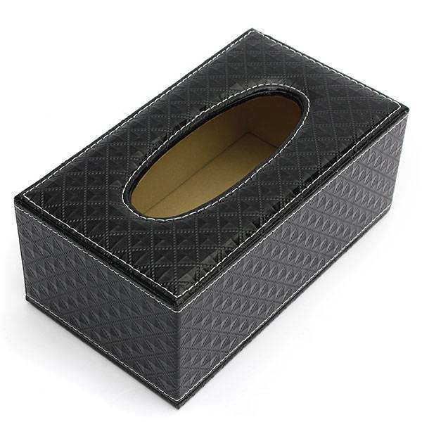Dieses schwarze Gewebe-Box hat ein schönes Design und ist von guter Qualität PU-Leder. Die Tissue-Box hat einen schwarzen Rautenmuster und ist auf der Oberseite aufgefüllt. Die Tissue-Box ist am Boden offen und daher einfach zu bedienen.