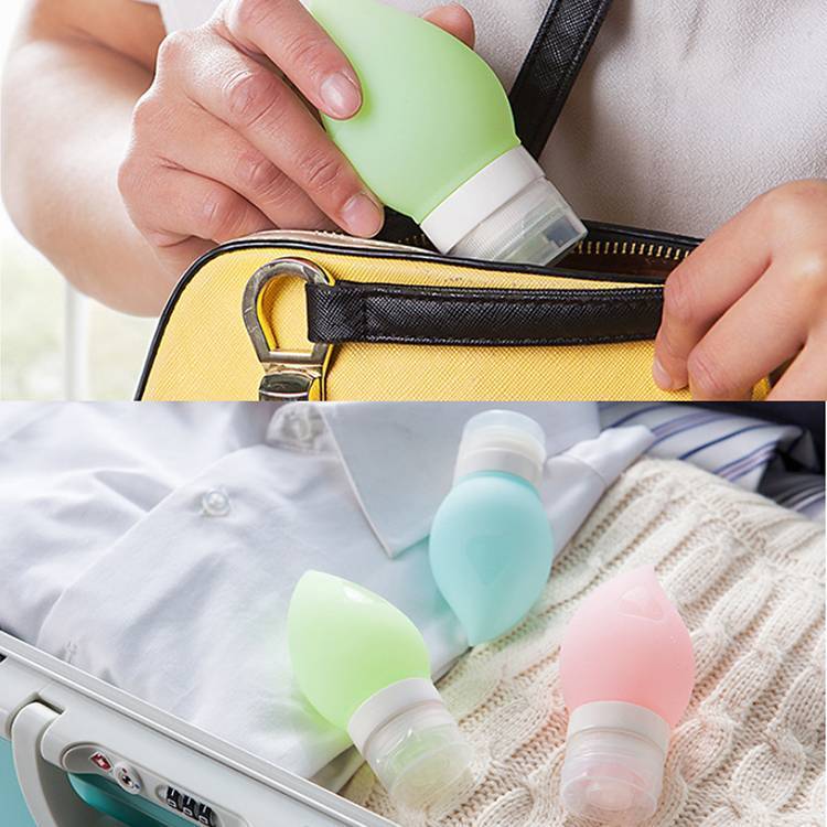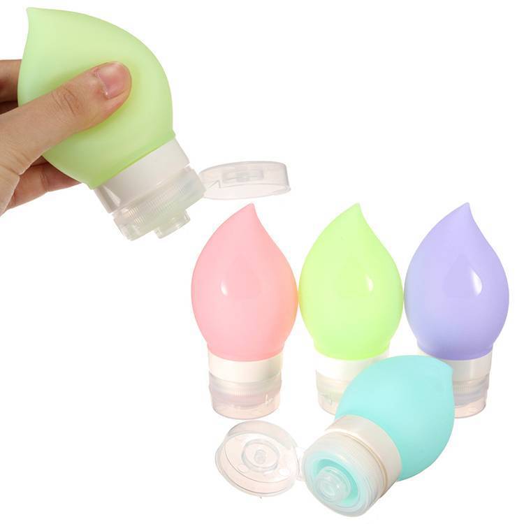 Diese Silikon-Reise-Flasche eignet sich für Ihre Lieblings-Shampoo, Conditioner, Lotion oder Creme Gesicht zu speichern. Ideal auf Reisen mitnehmen. Die Flasche ist in vier verschiedenen Farben erhältlich; rosa, lila, blau und grün. Diese schöne tropfenförmige Flasche ist für das Flugzeug sehr praktisch.