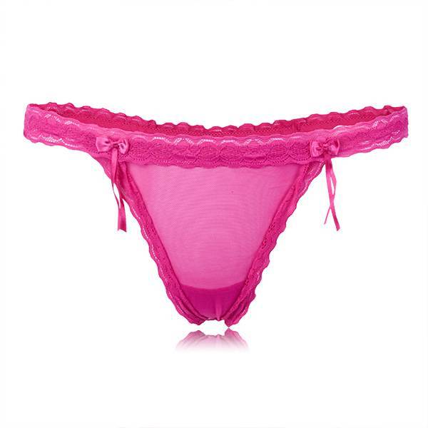 Dieser nette String wird mit Spitzenborte und kleinen Bögen verziert, für einen spielerischen Effekt. Der String ist in schwarz, rosa und blau erhältlich. Die Zeichenfolge kommt in einer Größe Größe, geeignet, wenn Sie Größe S oder M. tragen