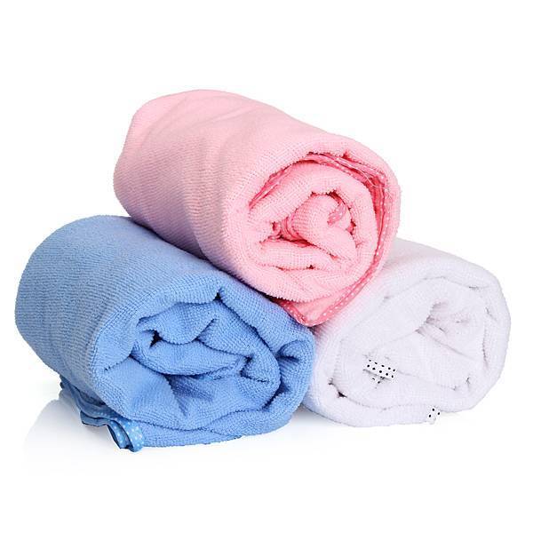 Diese schöne weiche Badetuch ist aus Mikrofaser und nimmt sieben Mal so viel Wasser wie ein gewöhnliches Handtuch. Das Handtuch ist in drei verschiedenen Farben; rosa, weiß und blau.