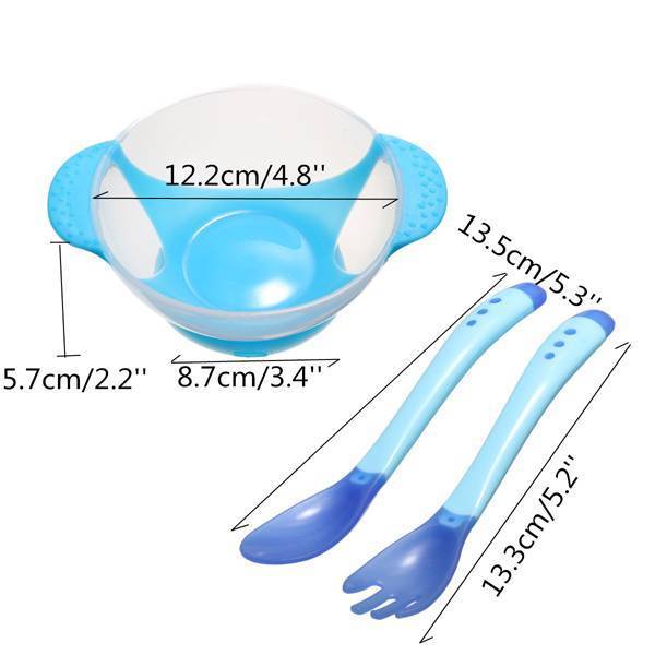 Dieses nette Abendessen Set besteht aus einer Schale, einer Gabel und einem Löffel, und ist in rosa und blau erhältlich. Die Schale kann beheben, indem Sie die handliche Saugnapf auf dem Tisch verwenden, so wird es schnell nicht umfallen. Darüber hinaus enthält das Kit eine wärmespeichernde Design, Mahlzeiten warm bleiben, machen und messen Sie sich mit Besteck, wie heiß das Essen ist: wenn Gabel und Löffel weiß, die Temperatur über 40 Grad.