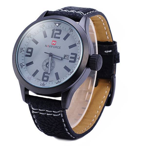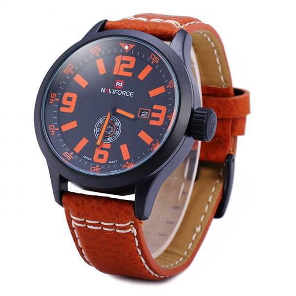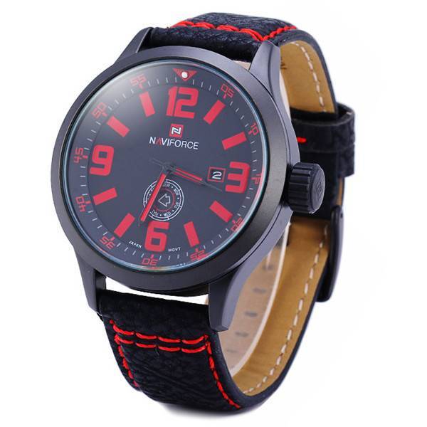 Eine harte Männer Uhr mit robusten Gehäuse und feste Stellen ohne unnötige Aufregung, wasserdicht bis 30 Meter. Das Band ist aus echtem Leder. Wählen Sie aus vier auffälligen Farben.