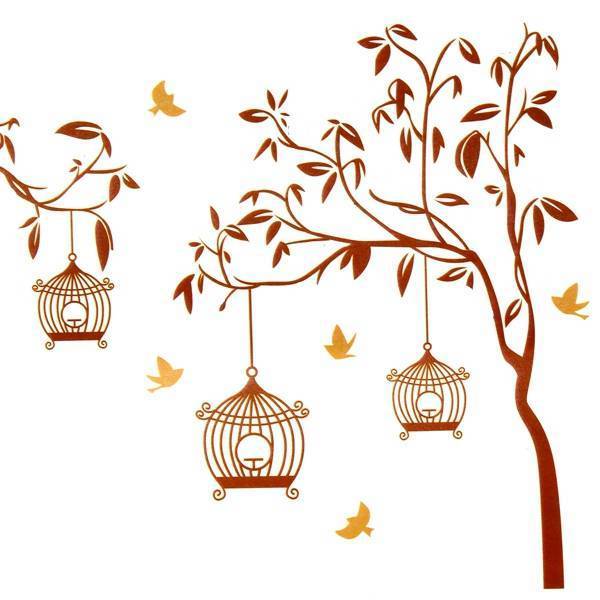 Haben Sie eine langweilige Wand, die Sie munter wollen? Mögen Sie Vögel? Dann ist dieser Vogelkäfig Wandaufkleber für Sie. Die Konstruktion besteht aus einem Baum mit drei Vogelkäfige und sechs Birdies. Dank der braunen Farbe es hat auch eine herbstliche Atmosphäre. Die Elemente können Sie separat an der Wand für Ihr eigenes Muster einfügen. Es klebt auf fast jeder glatten Oberfläche wie eine Wand, Tapete, Fliesen oder Schrank. Mit einem scharfen Gegenstand wie ein Messer oder eine Schere, können Sie die Aufkleber entfernen an anderer Stelle wieder einzufügen. Es bietet eine einfache und unterhaltsame Art und Weise eine persönliche Note zu Ihrem Zimmer ein wenig zu jubeln und zu geben.