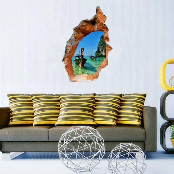 Dieses Wandplakat ist ideal als Dekoration in Ihrem Hause oder als Geschenk. Der Aufkleber hat einen netten 3D-Bild eines Ozeans und ist einfach zu hängen.