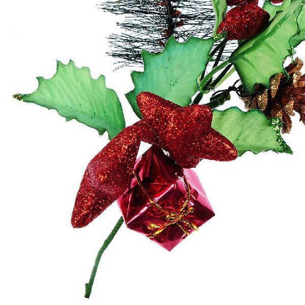Diese schöne Weihnachtsschmuck, bestehend aus glänzenden Blättern und Geschenke in festlicher Weihnachts Farben Grün, Rot und Gold. Diese schöne Dekoration ist perfekt für den Weihnachtsbaum.