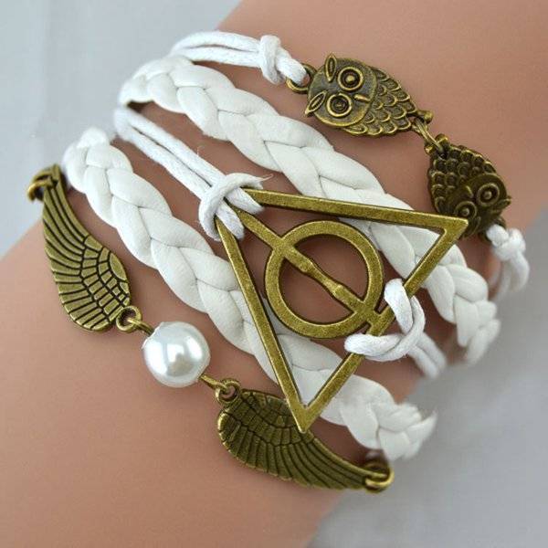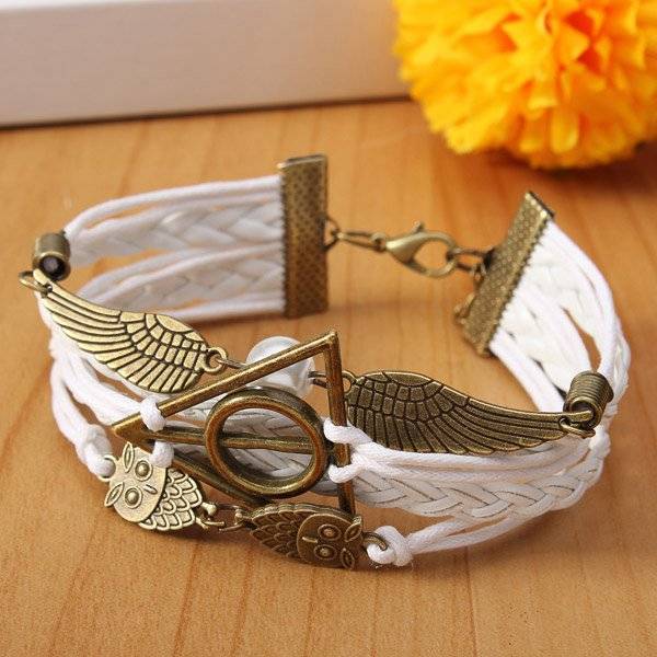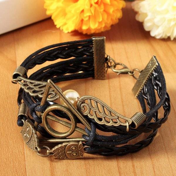 Dieser Artikel ist ein Doppel-Armband. Das Armband hat einen Vintage-Design und ist aus Aluminium, Leder und Kunstperlen. Auf dem Armband sind Hänger in Form einer Eule, Flügel und ein Dreieck. Das Armband ist geeignet für Männer und Frauen und hat eine einstellbare Länge von ca. 22cm. Die Doppel-Armband ist in mehreren Farben erhältlich.