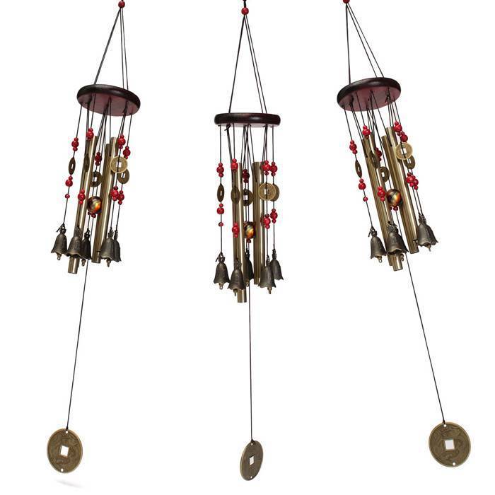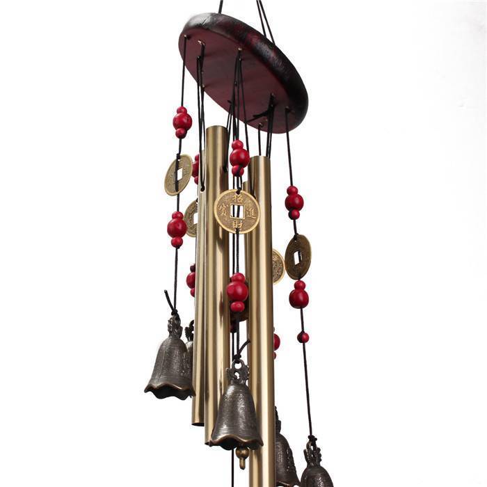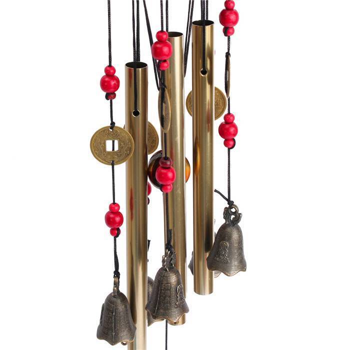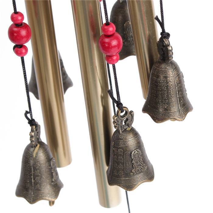 Dieses nette Wind Chimes hat 4 Röhren und fünf Glocken. Der Gong hat eine Bronzefarbe und ist aus Aluminium und Holz. Das Windspiel ist ein Symbol für Glück und eine große Dekoration für Ihren Garten.