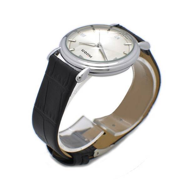 Dieses klassische wl907 Wilon Uhr der Männer mit römischen Ziffern hat einen schwarzen Kunstlederarmband und ein schwarzes oder weißes Zifferblatt. Die Uhr ist einfach schmucklos gestaltet. Eine geschmackvolle Uhr für echte Männer.