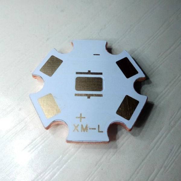 Ein Kupfer-Leiterplatte mit einem Durchmesser von 20 mm. Geeignet für: XHP50 und XHP70 LEDs. Kann auch für die CREE XM-L CREE XM-L2 LED und MKR MKR2 verwendet werden