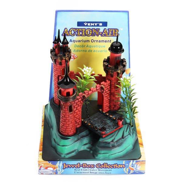 Die Blasen entlang der Zugbrücke geht wieder nach oben und unten (siehe Video). Diese spannende Burg wird bald in Ihrem Aquarium sein. Sie müssen nur den Luftschlauch auf sie verbinden, um den gleichen Bewegungseffekt zu erhalten. Bunte Schloss ist von Hand bemalt.