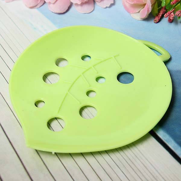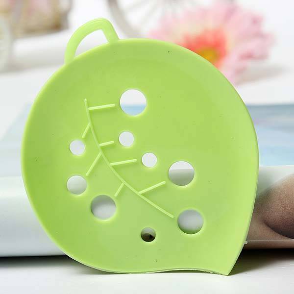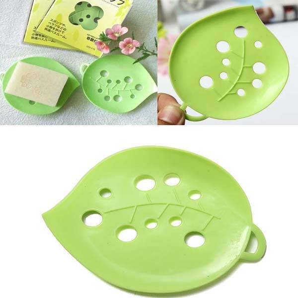Diese Seifenhalter mit grünen Blatt geformte Design, halten Seife trocken und leicht zu erreichen. Eine praktische Ergänzung zu Ihrem Badezimmer, und dank der geringen Größe auch geeignet auf Reisen oder ins Büro zu nehmen. Maße: 8 x 9 cm.