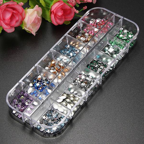1 x-Box mit farbigen Rhinestones für Nagelkunst