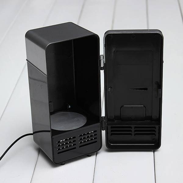 Der Mini-USB-Kühlschrank können Sie immer ein kühles Getränk bereit zu trinken. Es gibt Raum für eine einzelne Getränkedose, die im Kühlschrank LED durch den blauen beleuchtet wird. Die eingebaute Kühlplatte fällt innerhalb von fünf Minuten nach der auf die niedrigste Temperatur zu verbinden. Der Anschluss ist ein USB-Kabel können Sie zum Beispiel in den USB-Port Ihres Laptop oder Computer ersticht.