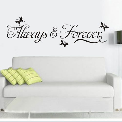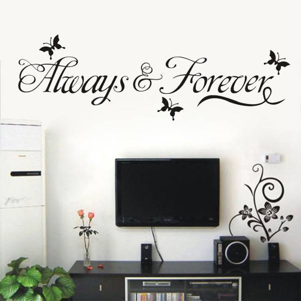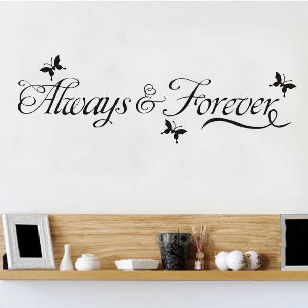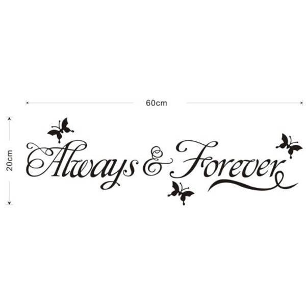 Diese Wandaufkleber, "Für immer und ewig" geschmückt mit schönen Silhouetten der Schmetterlinge sagt. Verzieren diese glatte Wände oder Fenster in Ihrem Wohnzimmer, Büro, Schlafzimmer oder zu speichern. Leicht zu kleben und zu entfernen. Der transparente Hintergrund ist der Aufkleber schön auf jeder Farbe Wand. Maße: 60 x 20 cm.