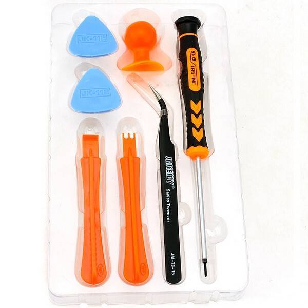 Die Jakemy JM-S81-Werkzeug-Set ermöglicht es, Teile eines Samsung Galaxy Telefon zur Reparatur oder Reinigung zu demontieren. Das Kit enthält einen Schraubendreher (17 cm) aus hochwertigem CR-V-Material mit rutschfestem Griff und Magnetkopf, einer Pinzette (13 cm), die bei der Entfernung von Schrauben und einen Saugnapf hilft ein Griff auf dem Bildschirm zu bekommen. Darüber hinaus enthält es zwei gekrümmte openers (9 cm) und zwei gerade openers um Partikel minutely unten zu entfernen. Verpackungsmaße: 19 x 11 x 3 cm.