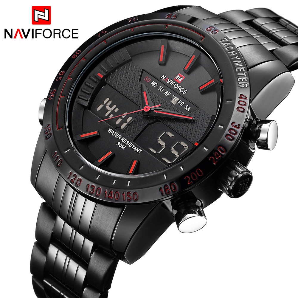 LuxusNAVIFORCE Männer Mode Sport Uhren herren Quarz Digital Analog Uhr Mann Voller Stahl Armbanduhr relogio masculino