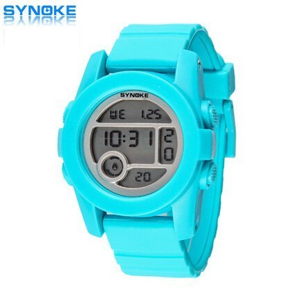 SYNOKE diese Uhr ist aus Silikon und Glas gefertigt und ist wasserdicht bis zu 50 Metern. Die Uhren sind unisex und haben eine praktische LCD-Display mit Hintergrundbeleuchtung. Erhältlich in verschiedenen Farben.